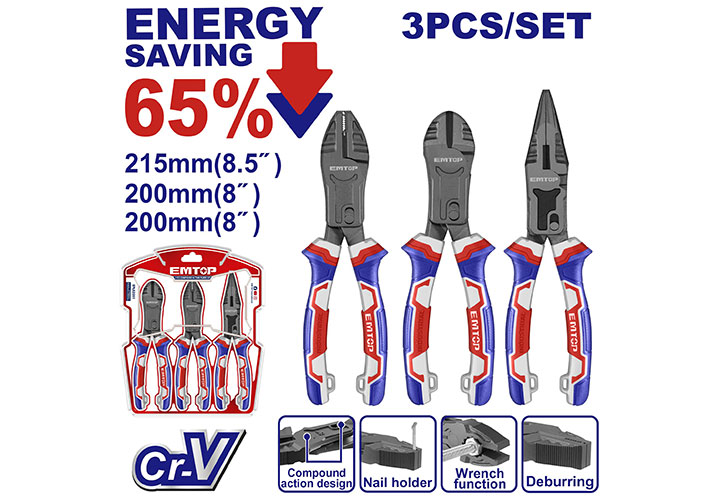 Bộ kìm điện, kìm nhọn, kìm cắt 3 chi tiết Tolsen 10400